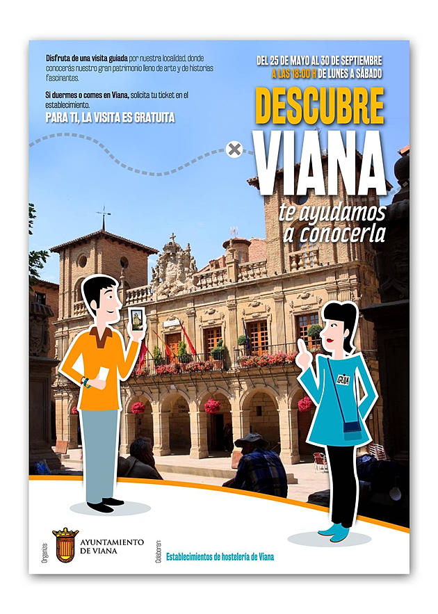 El Ayuntamiento de Viana junto con la hostelería del municipio, han lanzado una interesante propuesta para atraer turistas a la ciudad. Si duermes o comes en algún establecimiento de Viana, para ti la visita es gratuita. Simplemente hay que solicitar el ticket en el establecimiento y nosotros te invitamos a conocer nuestro gran patrimonio lleno de arte y de historias fascinantes. La visita se realizará de lunes a sábado a las 18.00 horas y el punto de partida es la oficina de turismo.